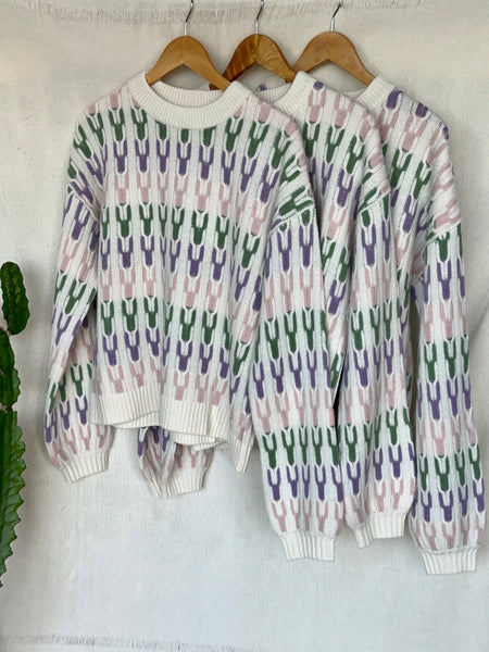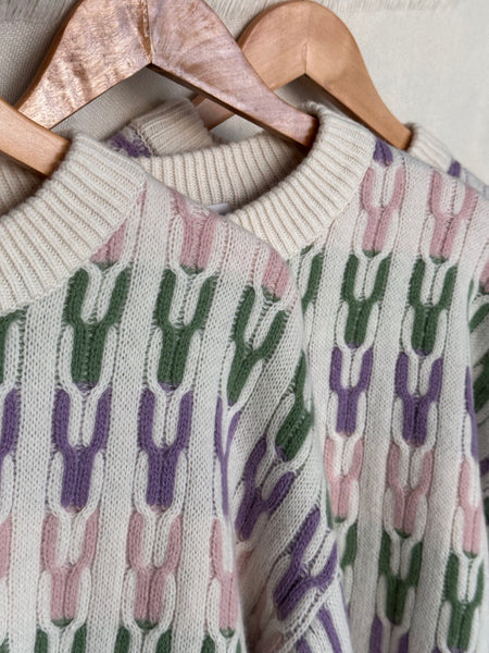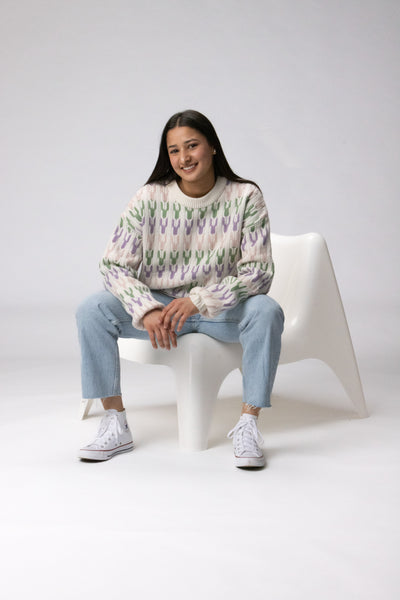 This creamy toned jumper by Sashū is knitted with 100% pure extra fine merino wool. The oversized fit sweater is soft and comfortable, it features Signature Jacquard trim down the arms and body. Completed with rib-knit finishing at the cuffs, neck and waistband.